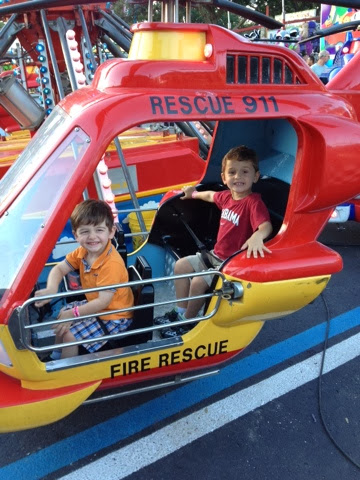 I promised pictures, and who am I not to deliver? Here is the birthday boy riding the rides with his younger brother (the two-year-old).